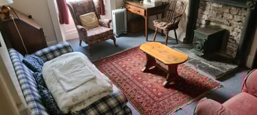 Spacious sitting room with wood-burner